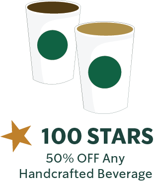 - 100 Stars: 50% off any handcrafted beverage (\*including promo beverage)