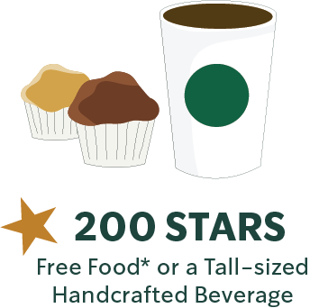 - 200 Stars: Free Food\* or a Tall-sized handcrafted beverage (\*excluding promo beverage)