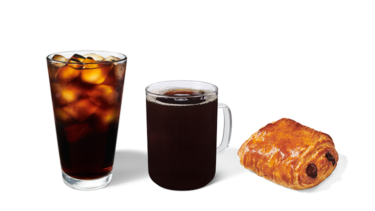 ### Brewed hot or iced coffee or tea, bakery item, packaged snack and more